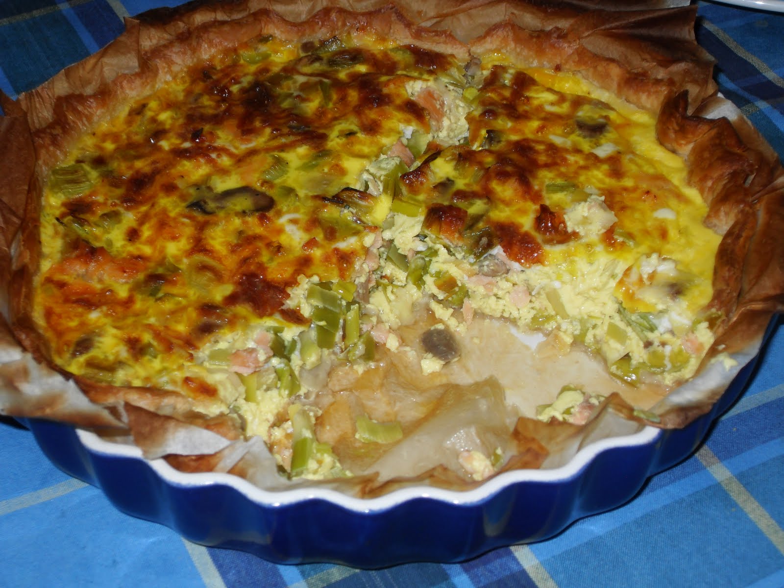 Fiz esta quiche no início deste mês (no pós festas!) porque tinha uma embalagem de salmão fumado que tinha sobrado das festas. Ficou muito boa mas os miúdos preferem a de fiambre...