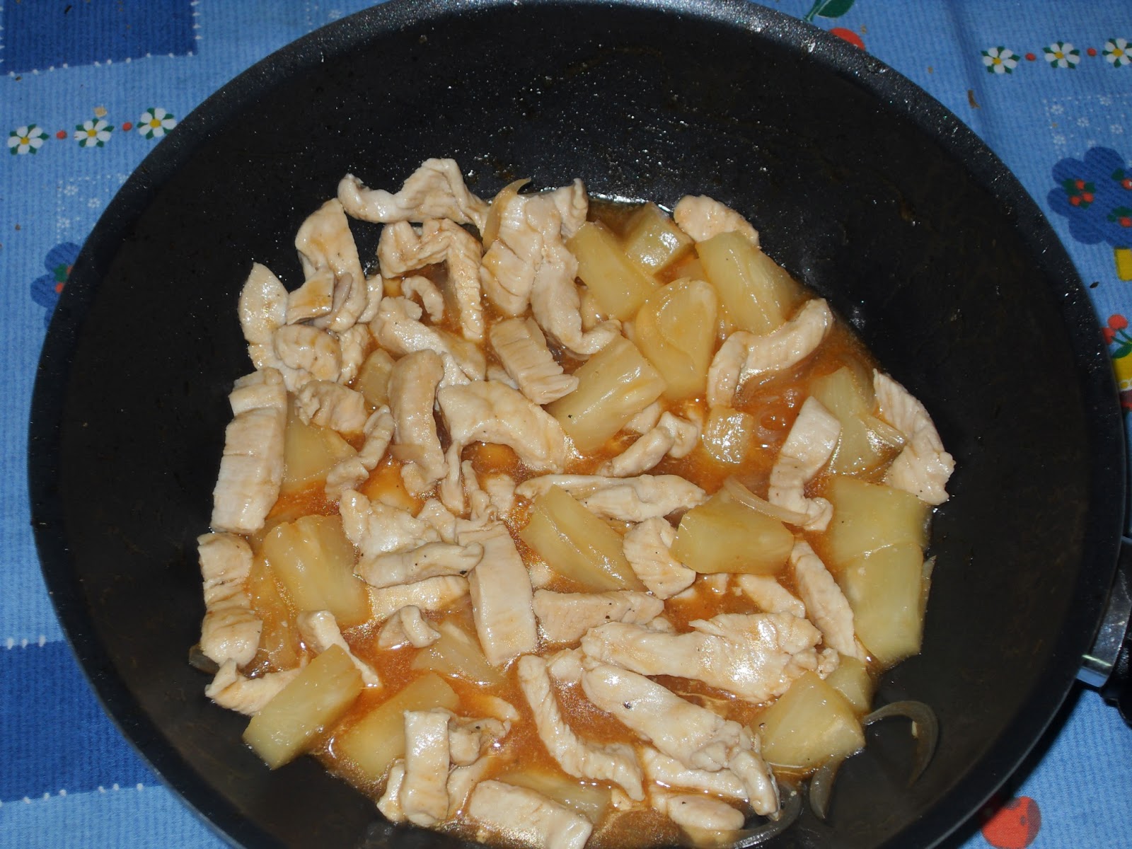 Por fim, acrescentar o ananás aos pedaços e retificar os temperos.